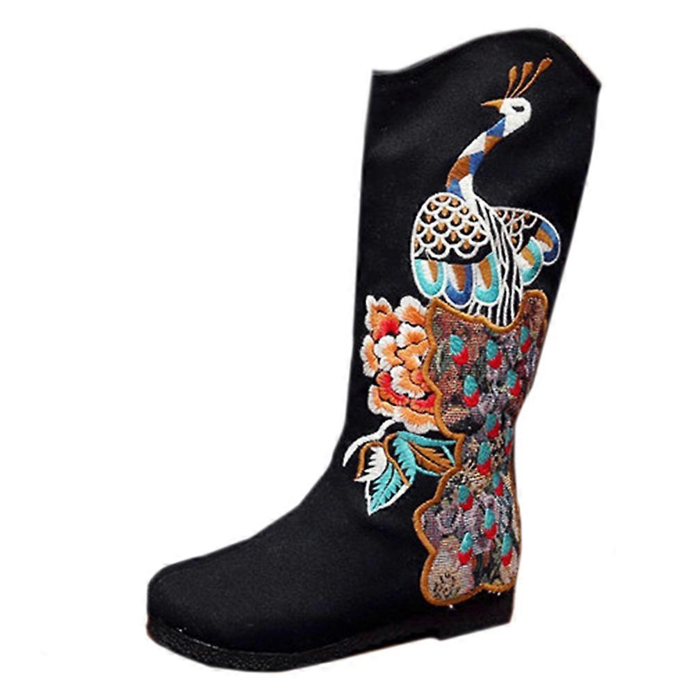Peacock Vintage Beijing Cloth Shoes Embroidered Boots