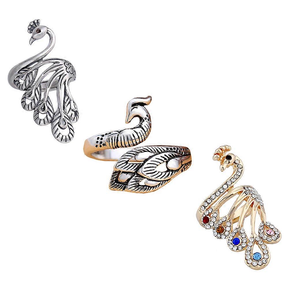 Peacock Adjustable Finger Rings Crochet Yarn Guide Vintage Style Open Ring for Knitting Sewing Craft Decorative Accessories for Women