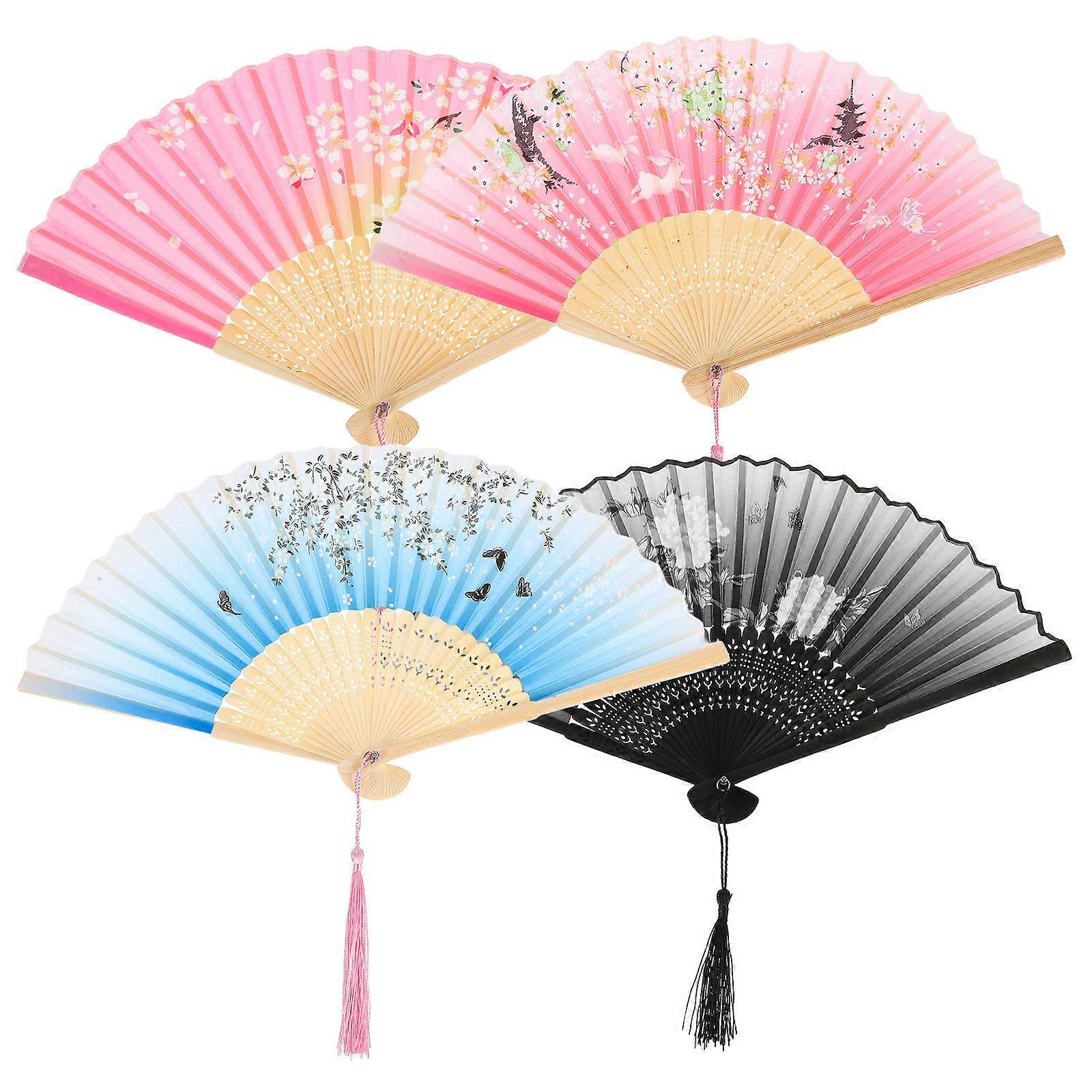 Old Fashioned Chinese Fan Wooden Handle Birthday Party Accessory 4Pcs