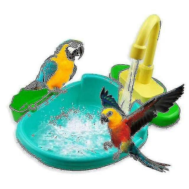Automatic Bird Bath: The faucet is designed to require the installation of 2 AA batteries (not included). Pour some water into the bathtub, turn on the faucet switch, and get circulating water. Automatic water flow helps birds bathe. Making bird bathing easy: With a bathtub, you can make bird bathing easy, and bathing is healthy for your birds. Not only does this help remove feathers and parasites, it also hydrates the skin and helps the bird dissipate heat. Odorless - The automatic bird bath is odorless, light and sturdy, and can be combined with toys to make bathing more fun for birds. Correct Size: The automatic bird tub measures approximately 34.7 x 24 x 8.2 cm / 13.66 x 9.45 x 3.23 inches, easy to install and easy to clean. Wide application: The bird bath is suitable for bathing different birds and pets, and can be used as a children's toy. Includes: Birdie Pool x 1