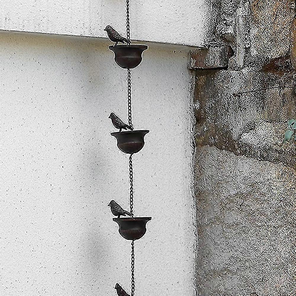 Birds On Cup Mobile Rain Chain Metal Adapter Replacement Downspout For Gazebos Garden Sheds And Patios