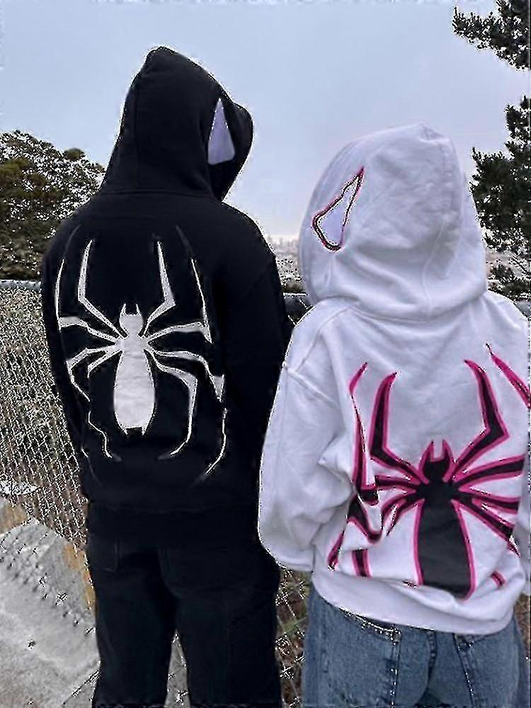 Dark Spider Print Hoodie Pullover Sweatshirt High Street Retro Loose Hip Hop Punk Kpop Dance Winter Clothes Long Sleeve Tops