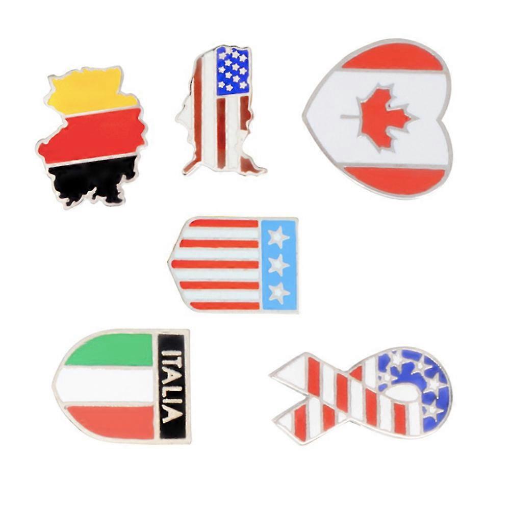 National Flag Brooch Creative Brooches Costume Props Assorted Color 6Pcs