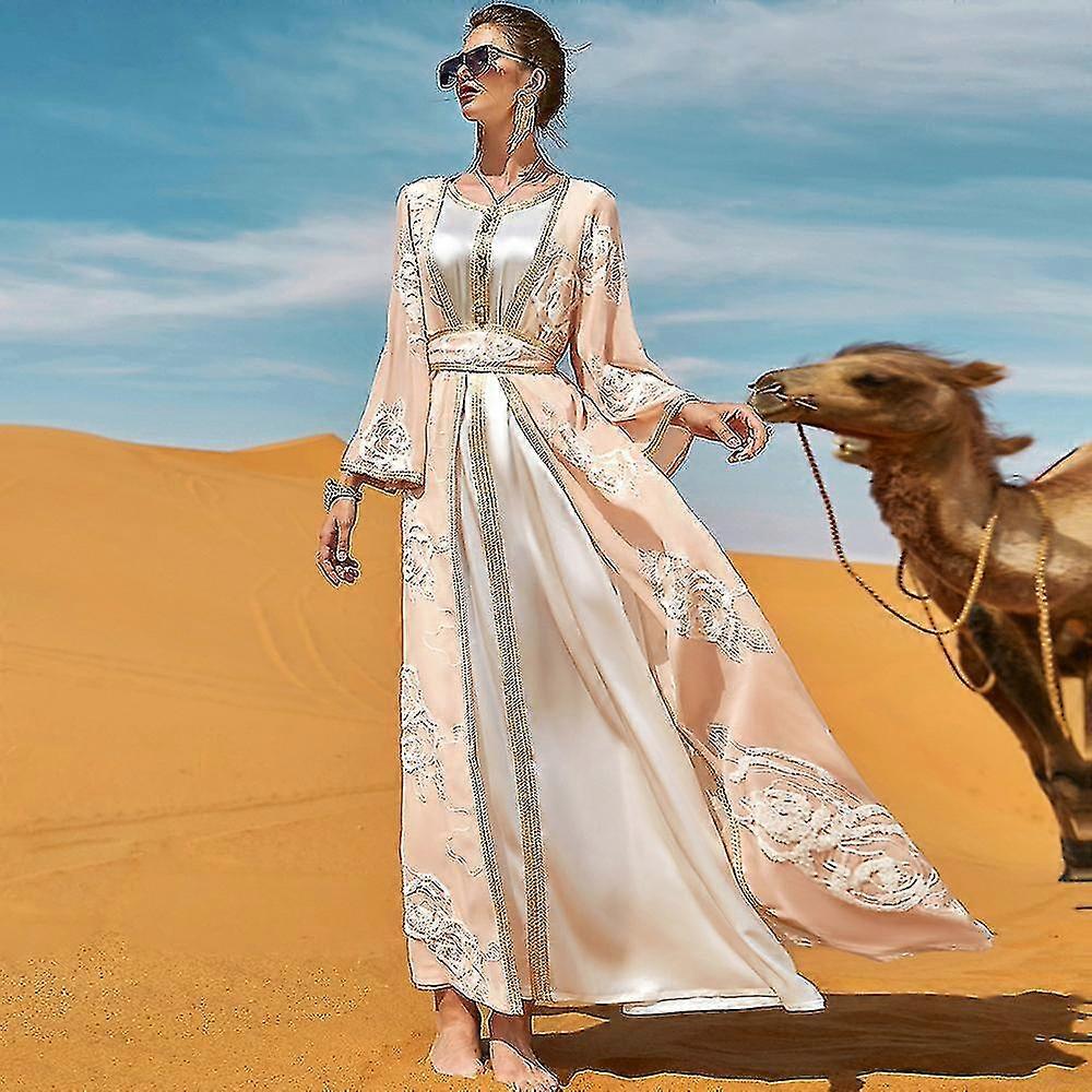 Eid Open Abaya Matching Satin Ip Long Dress 2 Piece Muim Sets Evening Caftan Marocain Iam Clothes Turkey Abayas For Women
