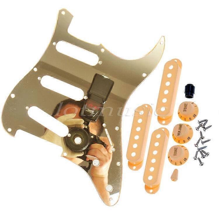 Guitar Pickguard SSS with Pickup Covers Knobs Covers Knob for Strat Gold Mirror
