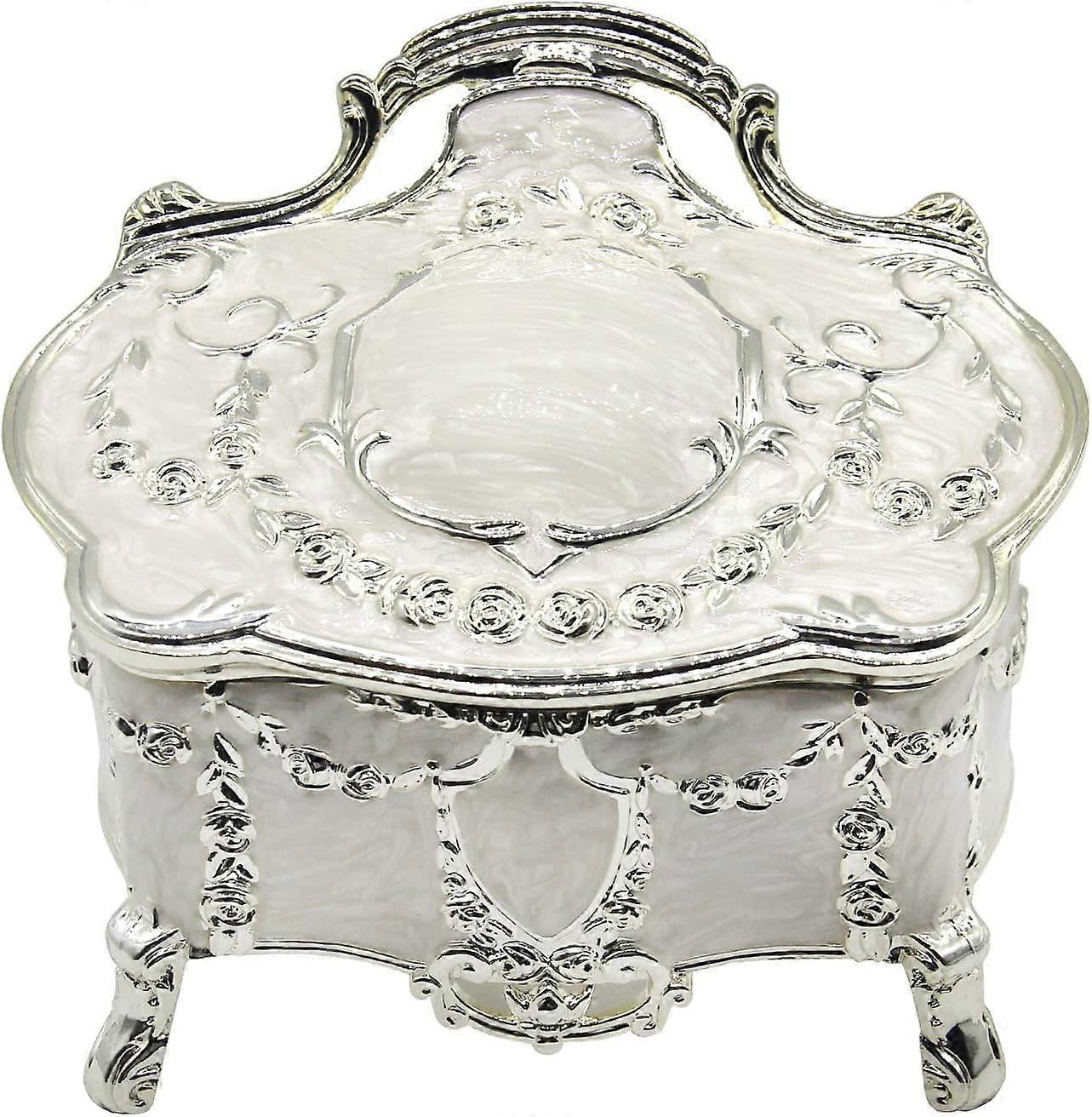 Luxury Vintage Metal Alloy Jewelry Box Ring Trinket Case Christmas Birthday Gift, Large