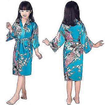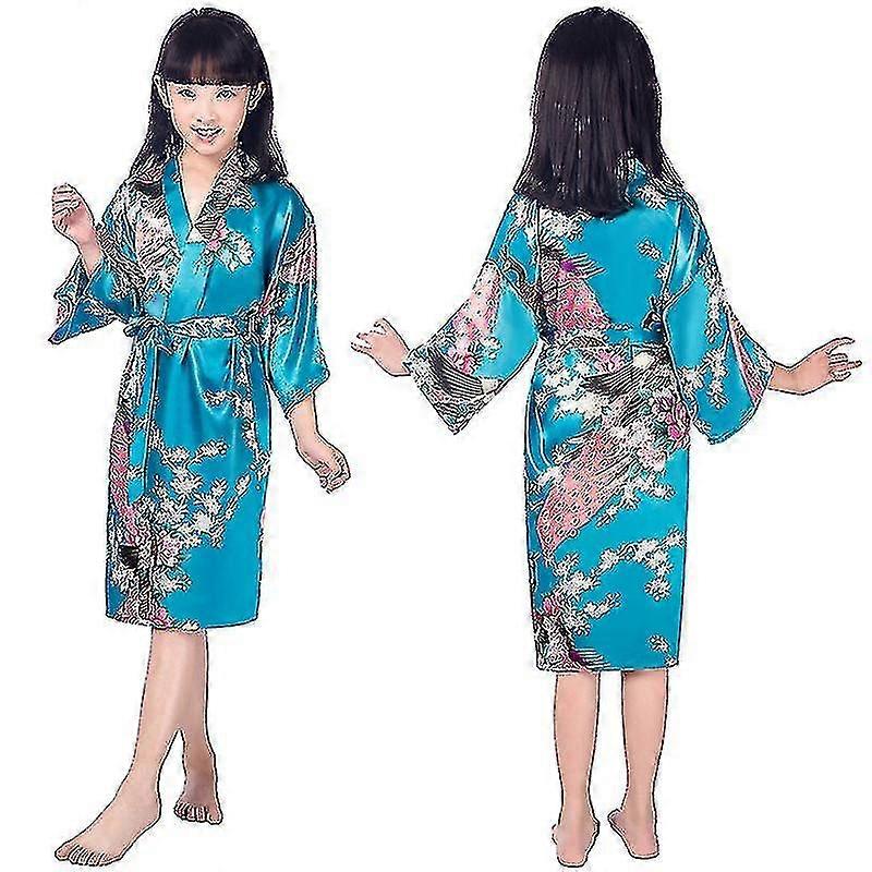 Girls' Satin Kimono Robe - Peacock And Blossoms Bathrobes Dressing Gown For Spa Wedding Birthday