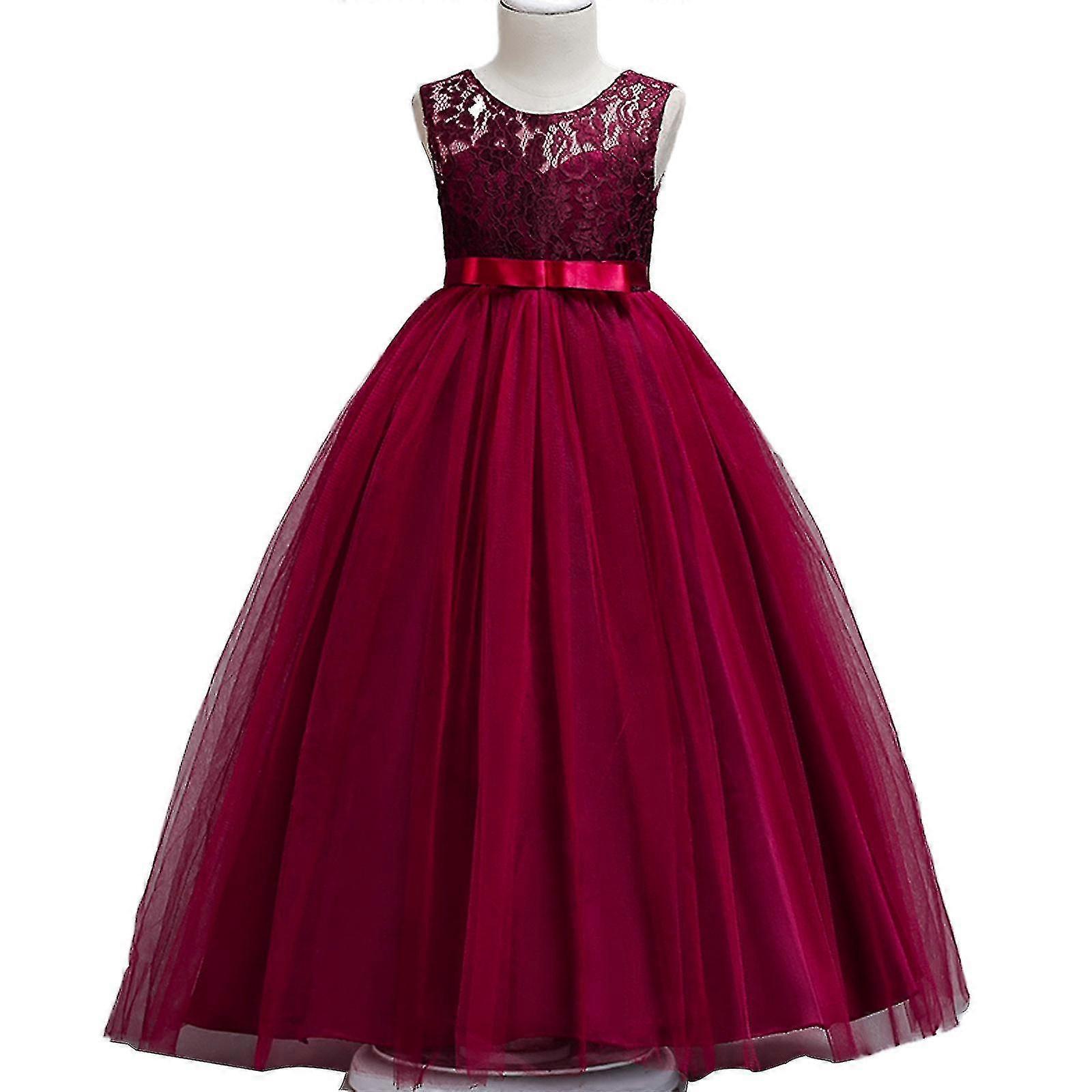 Girls Flower Lace Bridesmaid Dress Long Wedding Pageant Dresses Tulle Party Gown