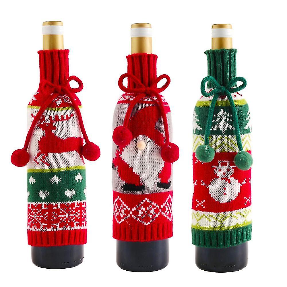 Fur Ball Bow Wine Bottle Set Elk Elder Snowman Knitted Wine Set