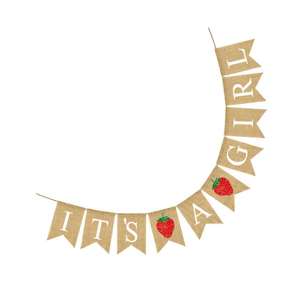 Strawberry Themed Party Favors Linen Banner Swallowtail Bunting Garland 1Set