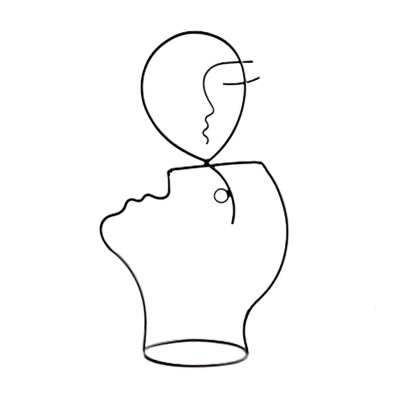 Metal Art Black Lines Figure Sculpture Abstract Face Statue Ornaments Earrings Jewelry Stand Home Decoration