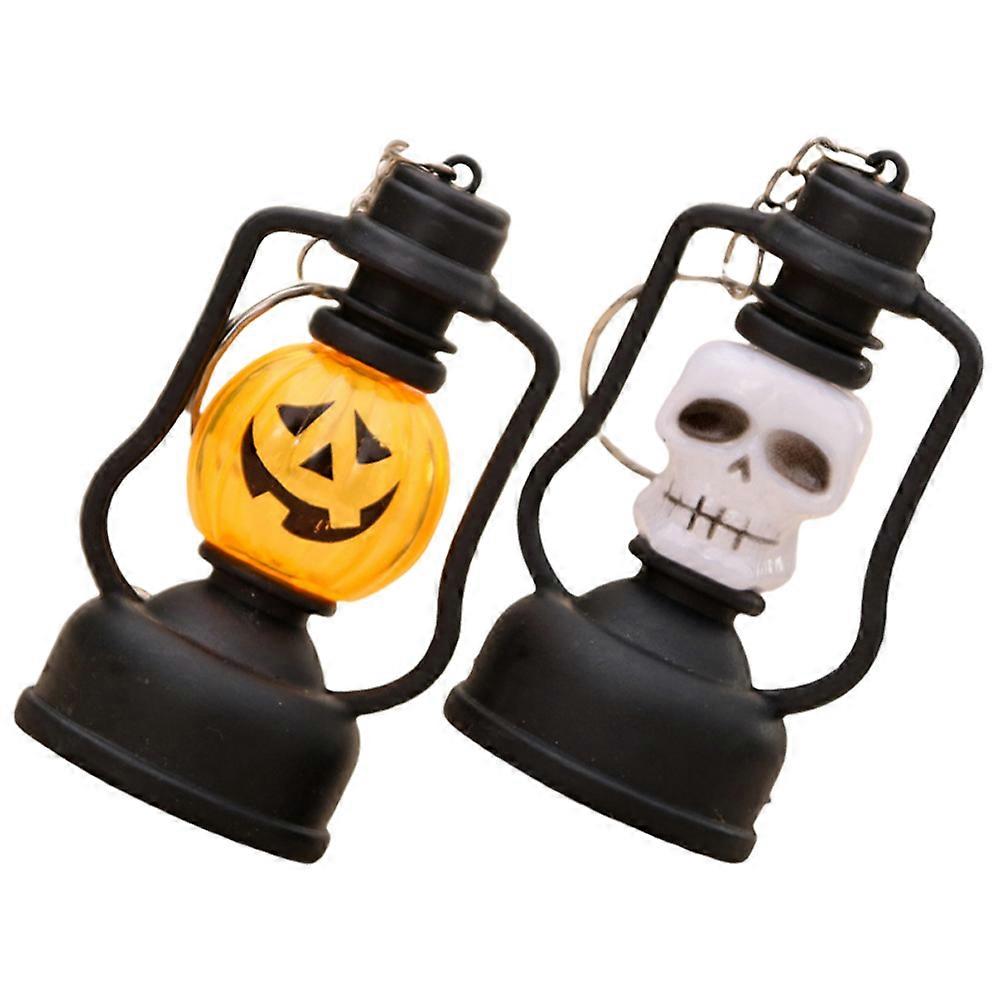 Lanterns Decorative Outdoor Halloween Party Decoration Plastic Miniature Compact Skull Pumpkin Pattern 3.1×1.6×1.6in 2Pcs