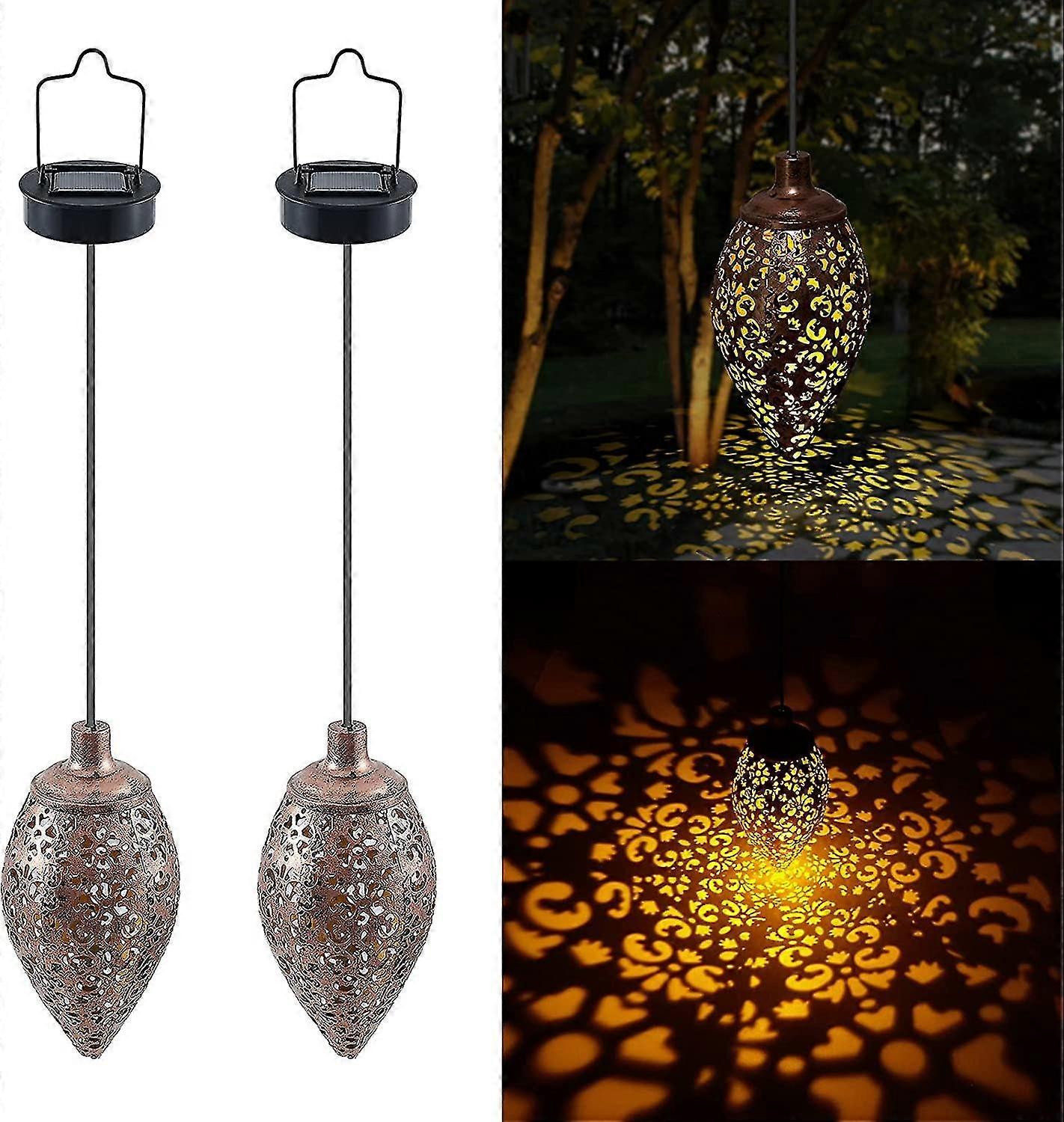 Solar Lanterns Outdoor, 2pcs Decorative Hanging Solar Lights Garden Solar Powered Lantern Outdoor Waterproof Retro Metal Warm White Led Lanterns With