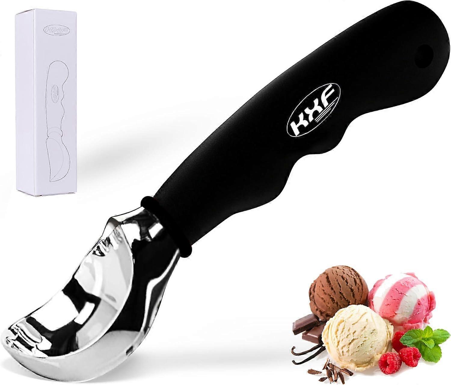 Stainless Steel Ice Cream Scoop with Non-Slip Rubber Grip Heavy Duty Ice Cream Spoon Sturdy Icecream Scooper Cookie Fruit Scoop (Black)