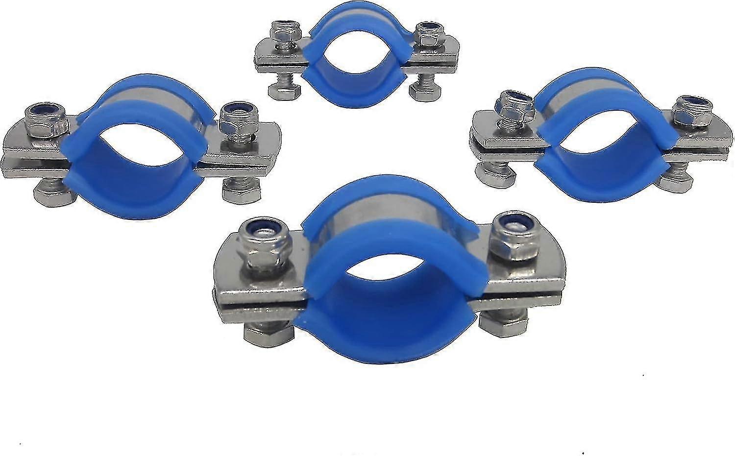 Stainless Steel Heavy Duty Flat Band Pipe Hose Clamp with Rubber Cushion, Multipurpose Rigid Handless Split Ring Clamp Bracket ID 32mm, Pack of 4