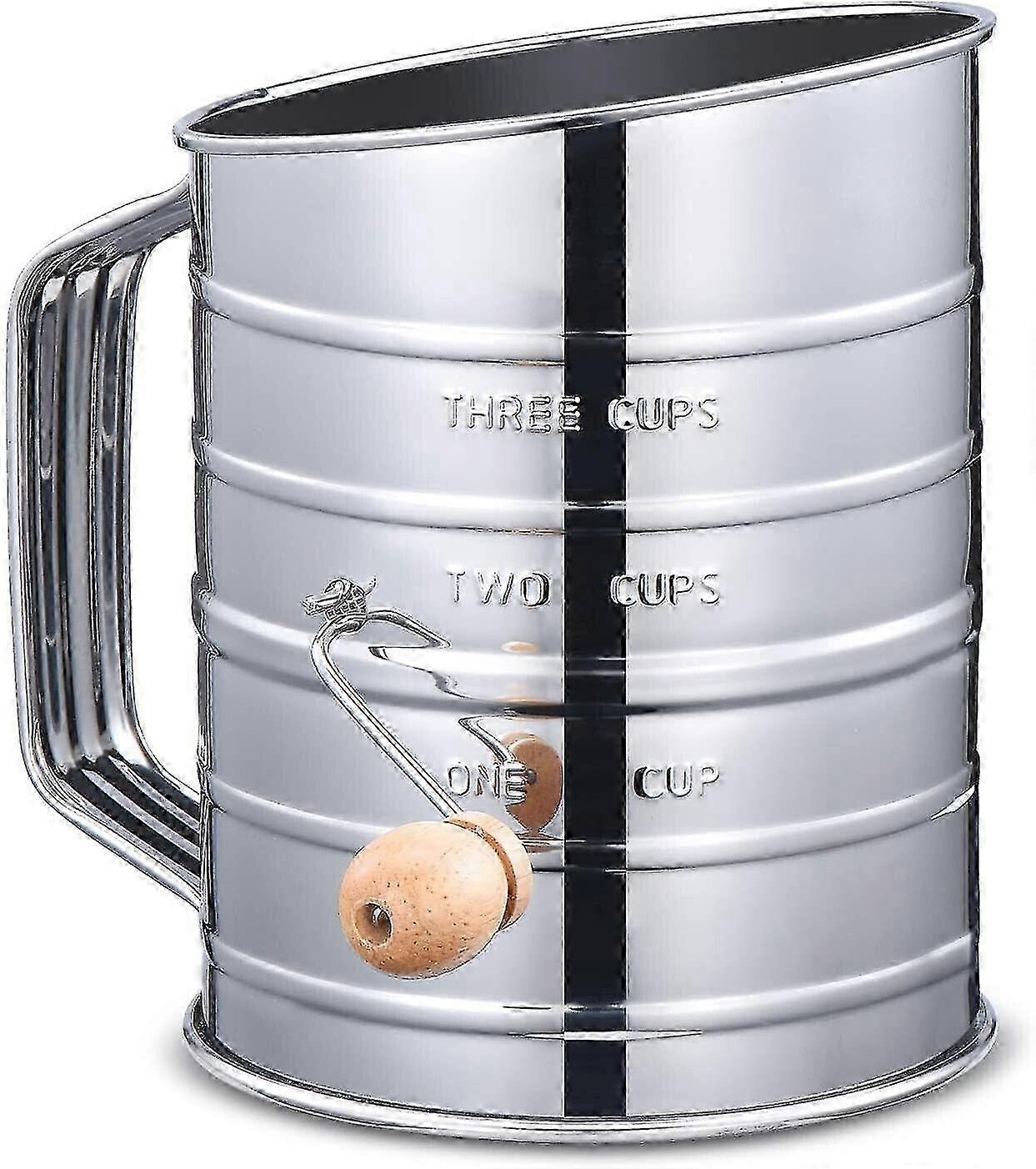 Stainless Steel Flour Sugar Sifter Rotary Hand Crank 3 Cup With 2 Wire Agitator