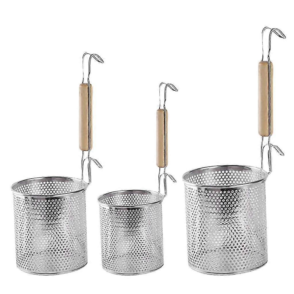 Stainless Steel Noodle Food Strainer With Hook And Wooden Handle Strainer Basket For Dumpling Udon Vegetables Pasta-XinHan