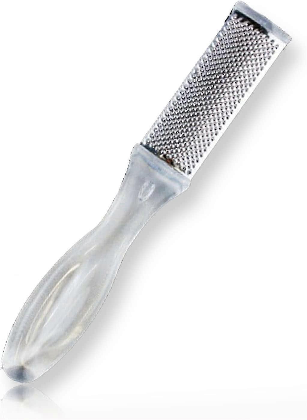 The high quality stainless steel pedicure file has a double-sided scraper design that helps remove calluses and dead skin cells. The non-slip design ensures easy and effective removal of hard skin. Color: Clear Size: 16.5*2.5*1.7cm Product List: 1* foot scraper foot scrubber