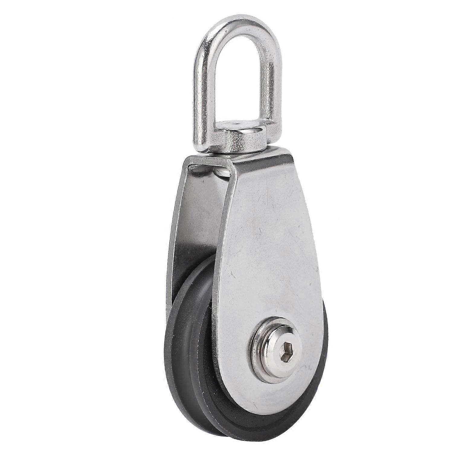 Stainless Steel Shell Dual Bearings Mute Pulley Block Nylon Wheel Groove 360 Degree Rotation