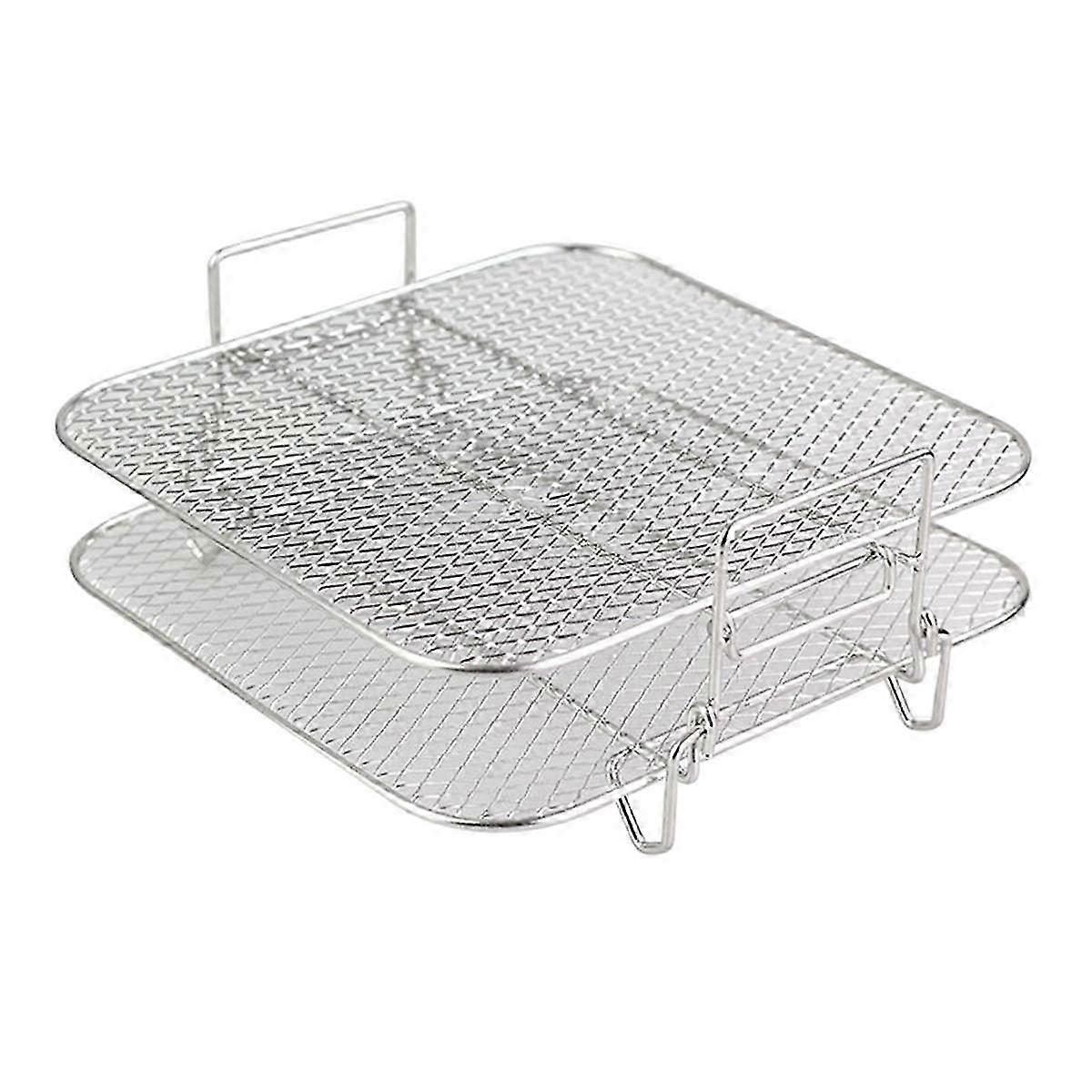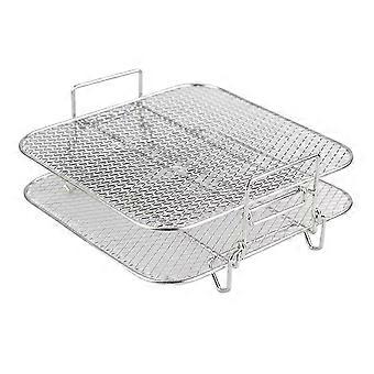 Stainless Steel Air fryer Pot Double Layer Rack Versatile Square Roasting Grill Air fryers Holder 5 JP