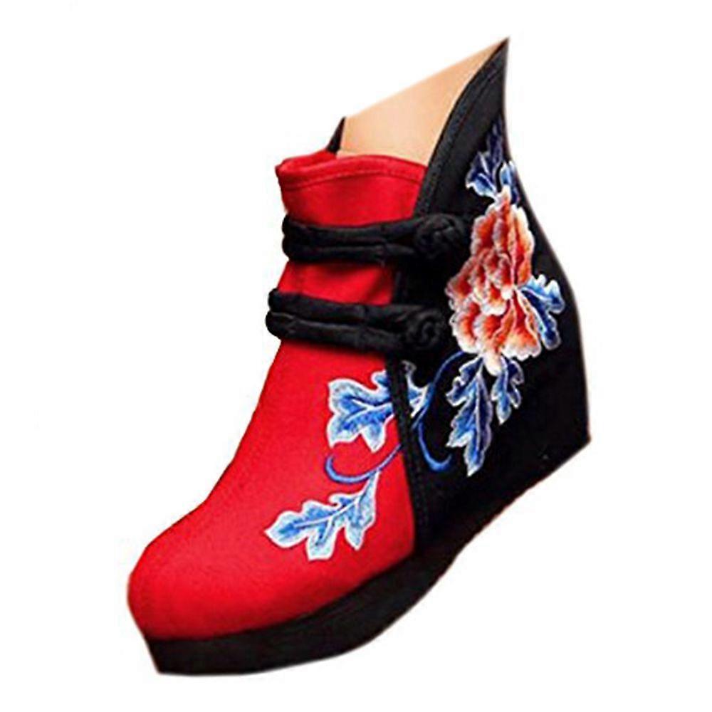 Old Beijing Cloth Embroidered Shoes Cowhells Short Boots