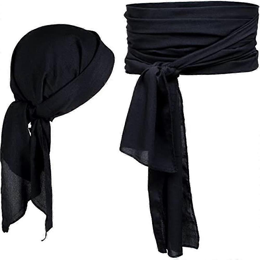 Pirate Costume Accessories Set Retro Durag Long-tail Pirate Hat Large Sash Medieval Renaissance Theme Cosplay Dress Up For Halloween Party