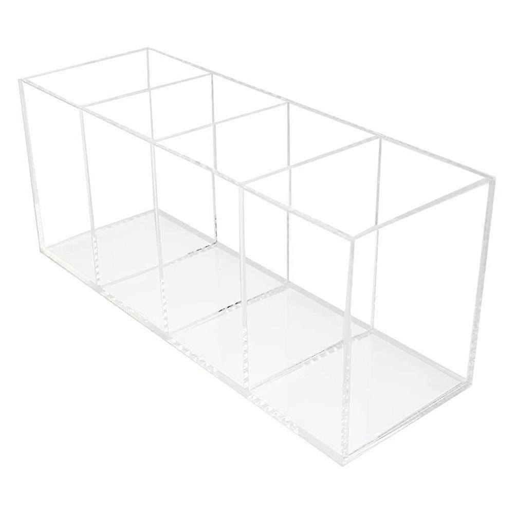 Stationery Storage Box Pen And Makeup Brush Container Simple Design Transparent 8.84X2.95X3.73in Office Use 1Pc
