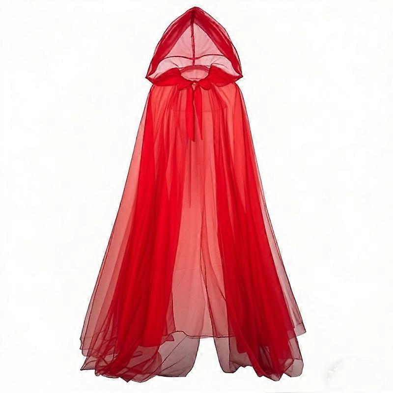 Scarlet Witch Cosplay Cape Halloween Ghost Costume Hooded Cloak Mesh Long Cape Party Performance Dress Adult Size 1.5m