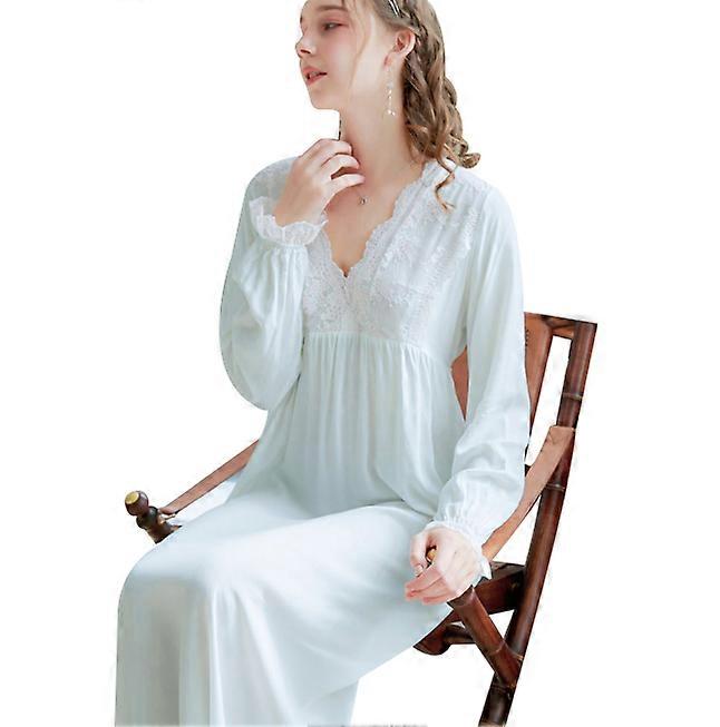Cotton Sleepshirt Long Sleeve Pajama Dress Vintage Loungewear for Women