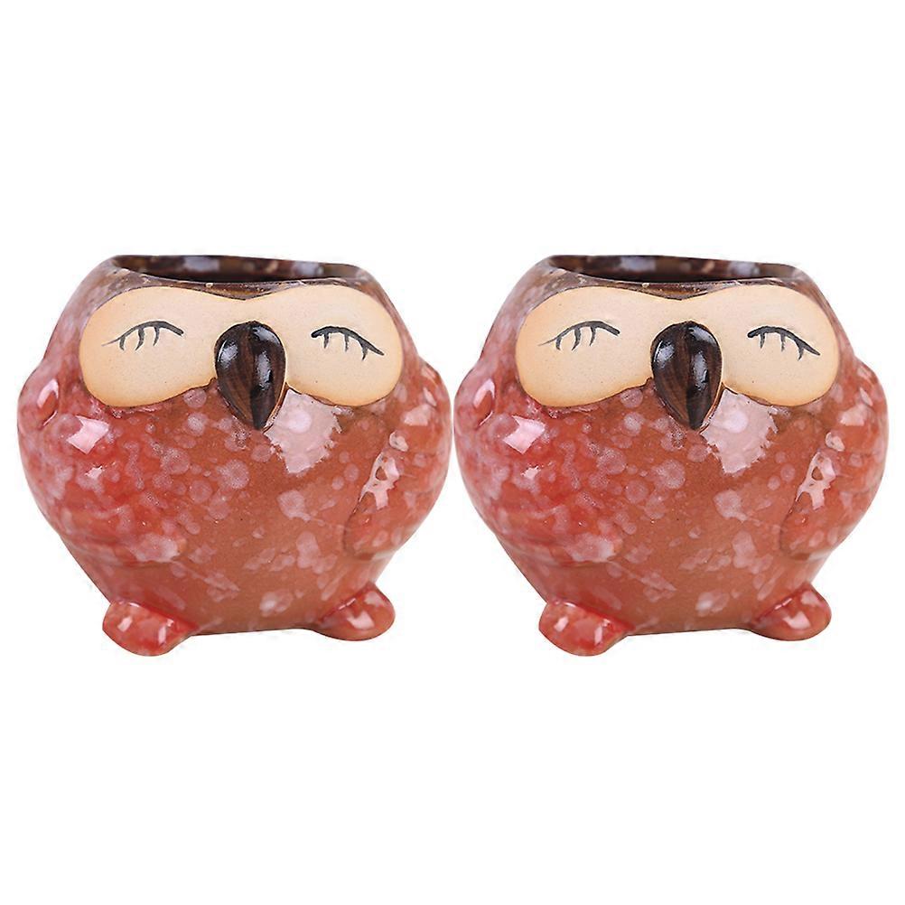 Cat Owl Flowerpot Ceramic Potted Planters for Storage 2Pcs Red