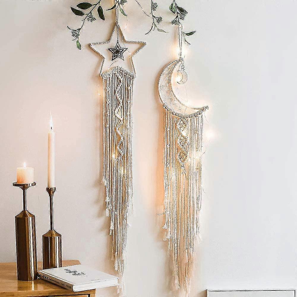 Moon Dream Catcher Star Dream Catcher With Lights Girl Room Decor Macrame Wall Hanging Dream Catcher Girl Wall Decor With Light Boho Tapestry Rope Art