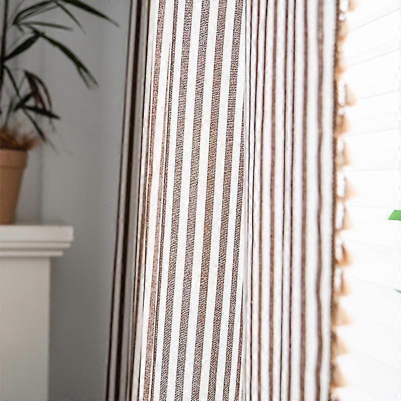 American Coffee Striped Small Window Kitchen Curtain Cotton And Linen Semi-shading Bedroom Coffee-colored Broom Lace