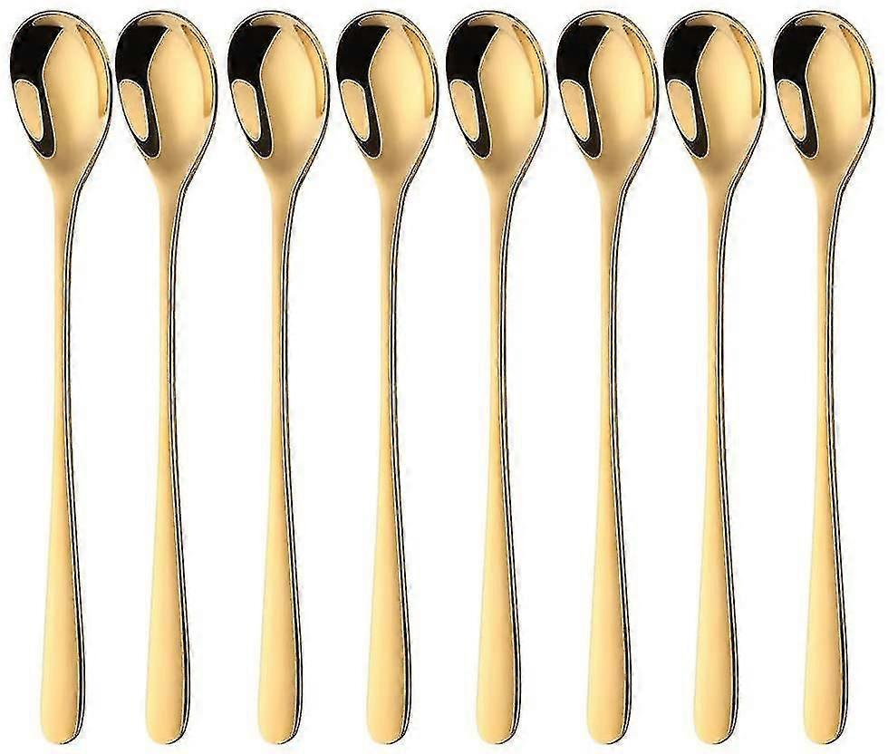 Coffee Iced Tea Spoons Set Of 8 Gold Stainless Steel Long Handle Spoon Spoon