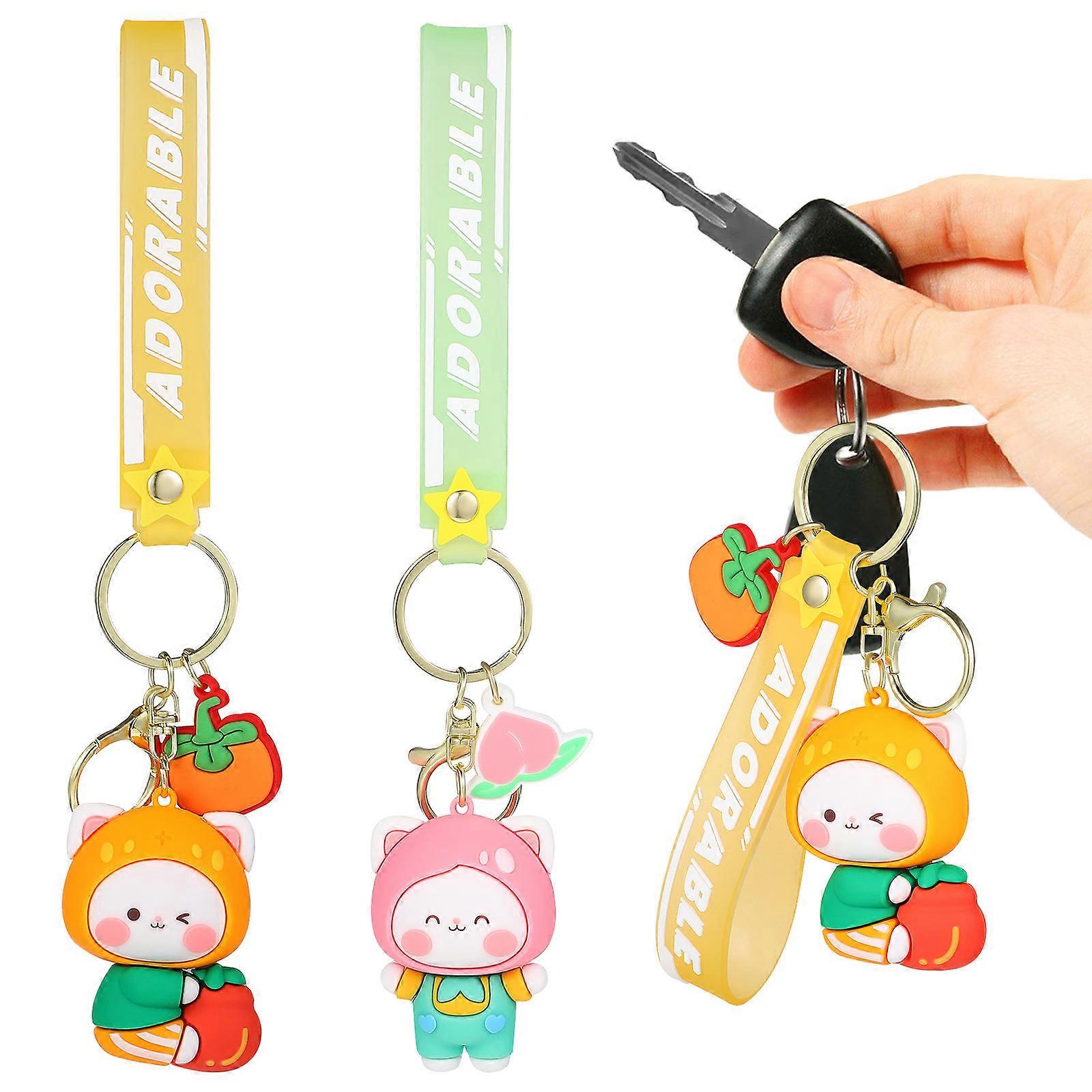 Cartoon Fruit Key Chain Bag Charm Pendant for Birthday Gift 2Pcs