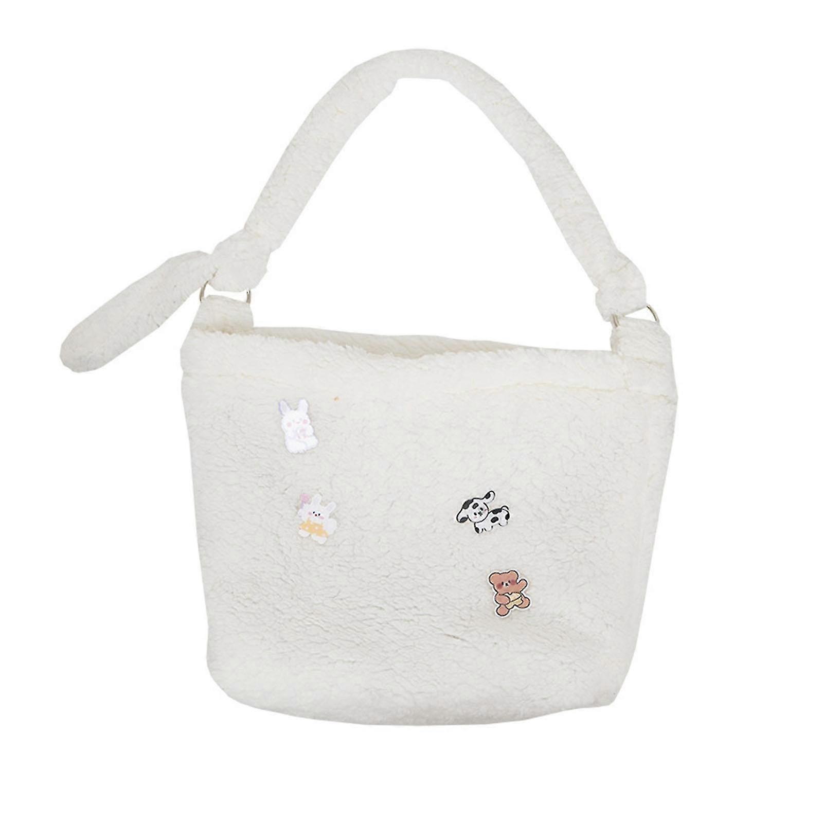 Cartoon Brooch Crossbody Bags Cute Large Capacity Tote Bags Plush Shoulder Bag