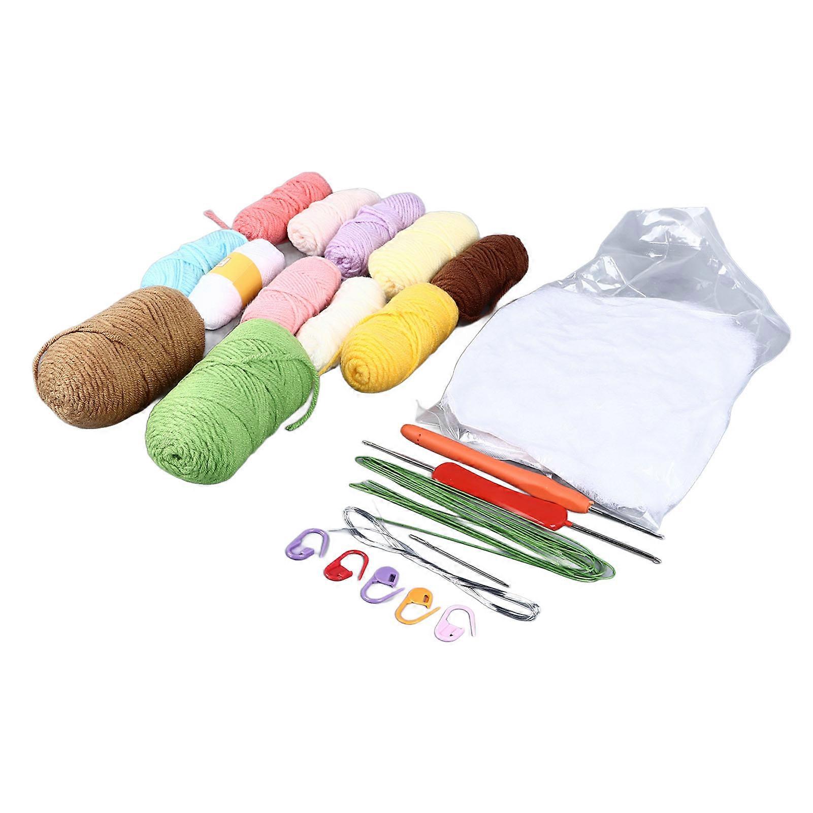 Crochet Starter Kit Flower Bouquet Design 12 Colored Yarn Stress Relief Ergonomic Crochet Kit for Beginners Kids Family