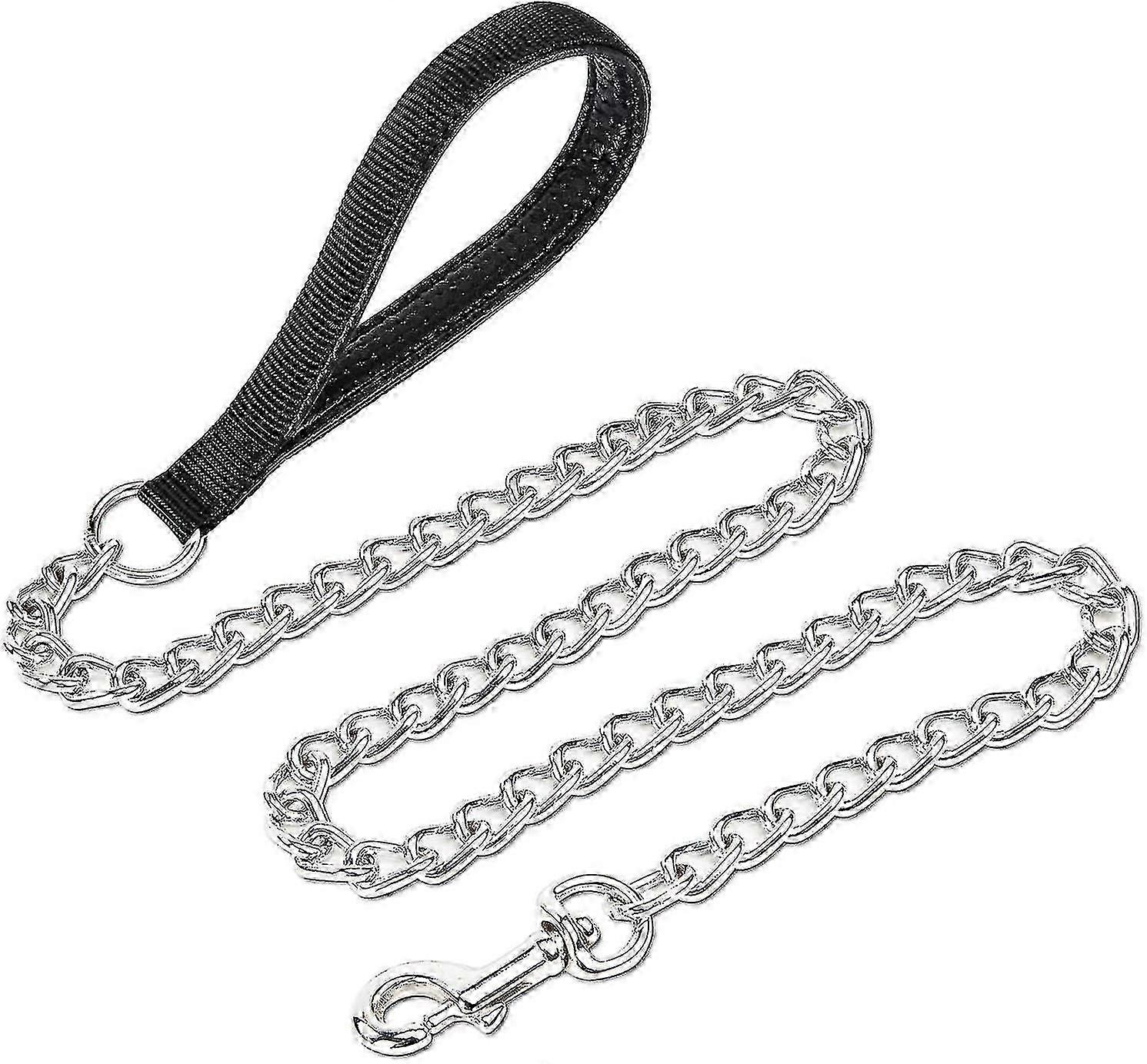 Chrome Plated Metal Dog Leash Chain Lead Heavy Duty Chew Proof Leash With Padded Handle Walking Traffic Training Traveling4' /2.0mm Small Chain