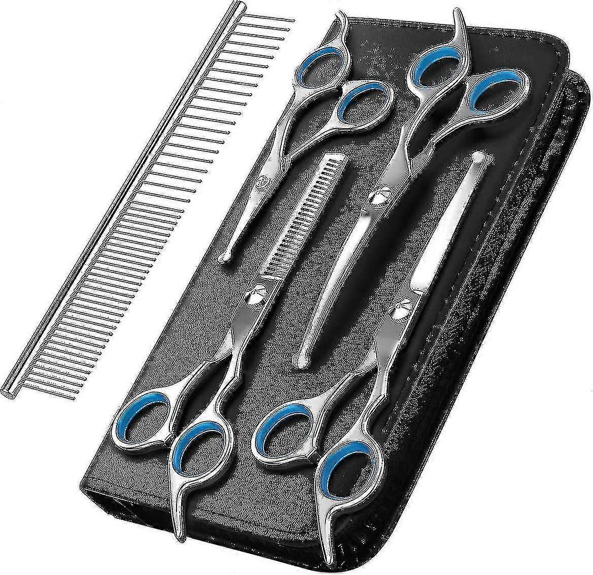 Dog Grooming Scissors Set, 5 Pcs Professional Pet Grooming Scissors Combing Grooming Scissors With Round Safety Tips For Pets Dogs Cat Thinning Scisso
