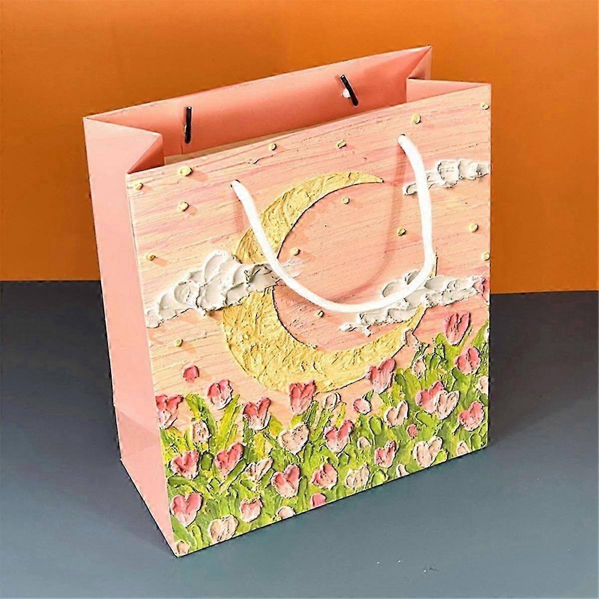Oil Painting Children'S Gift Bag Gift Box Bag Paper Bag Portable Birthday Gift Bag Souvenir,Red