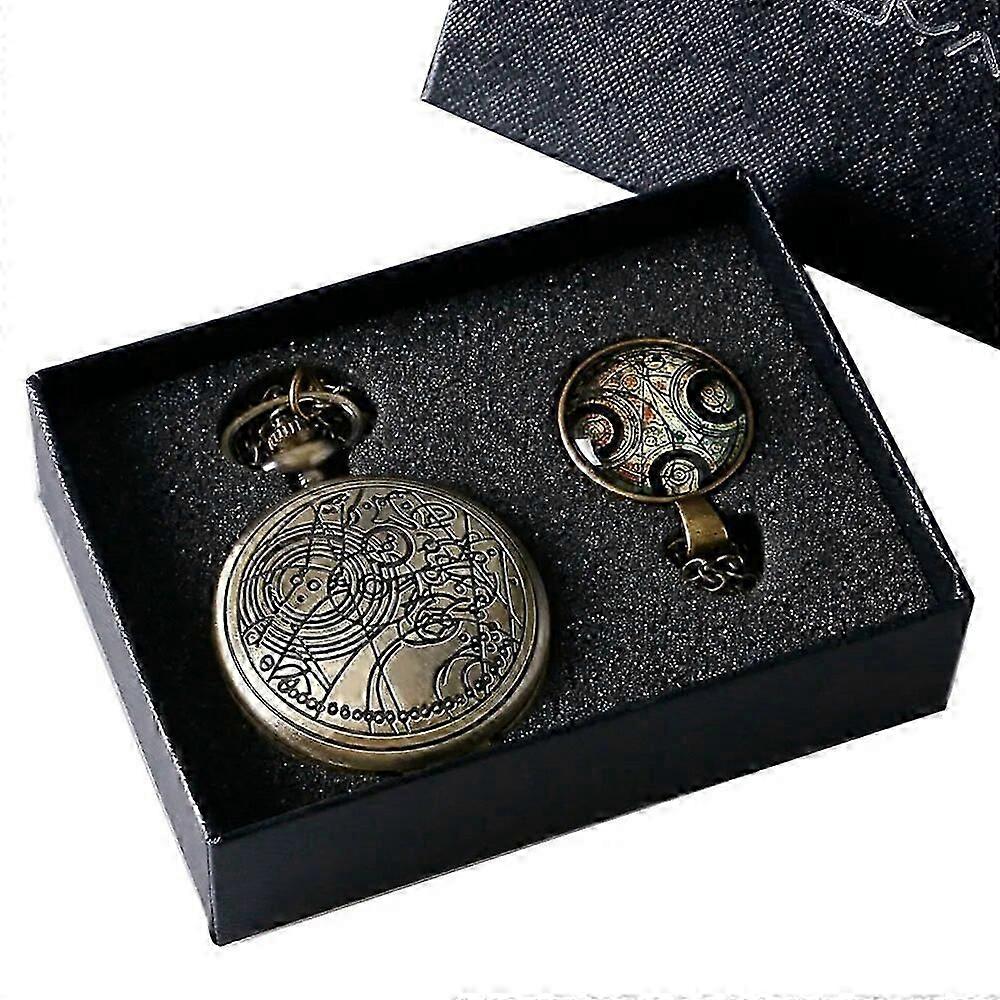Bronze Color Doctor Who Theme Antique Pocket Watch With Dr. Who Symbols Design Glass Dome Pendant Packing With Gift Box