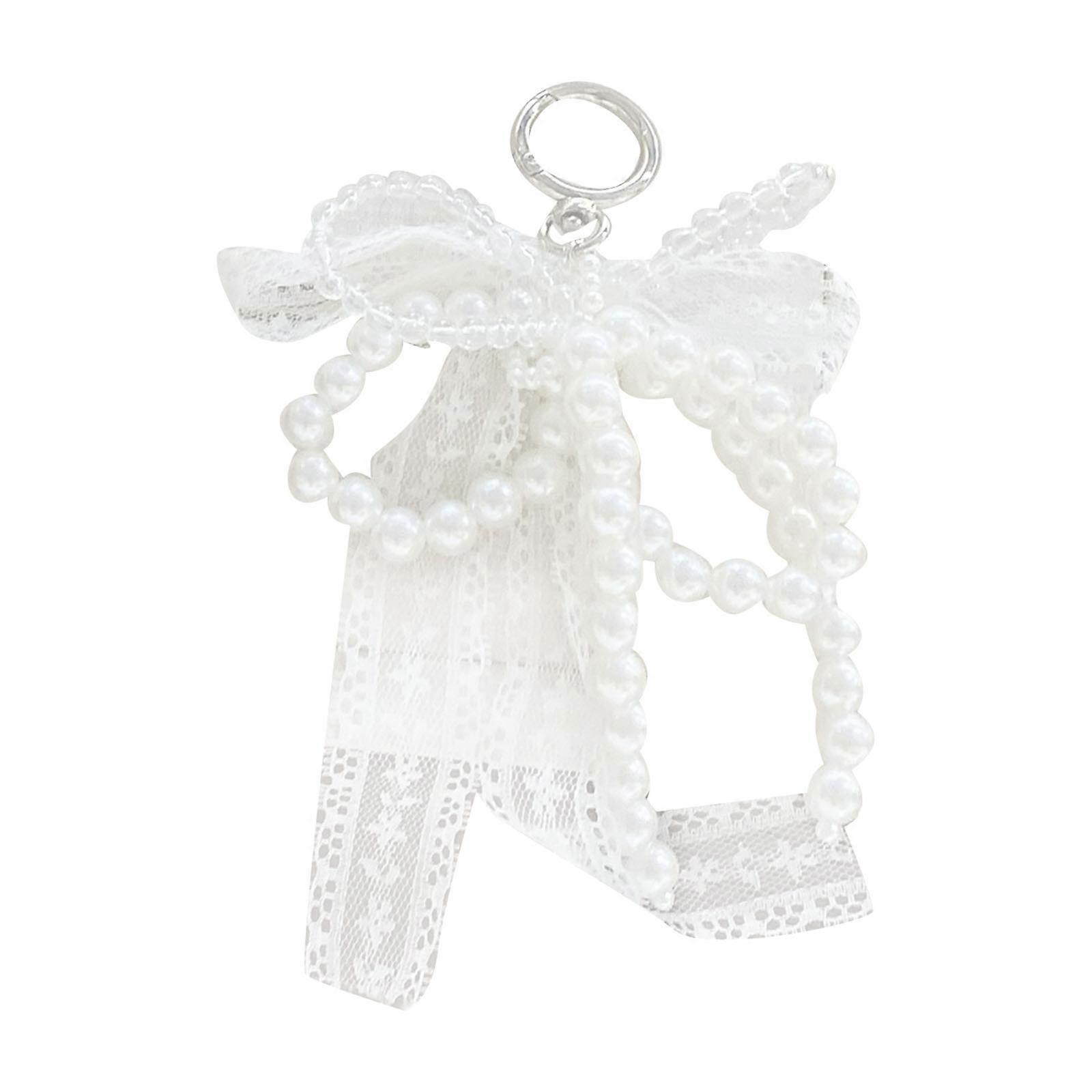 Sweet Pearls Lace Bowknot Keychain Pendant Fashion Lovely Hangings Ornament Keyring Backpack Decoration Charm Jewelry White