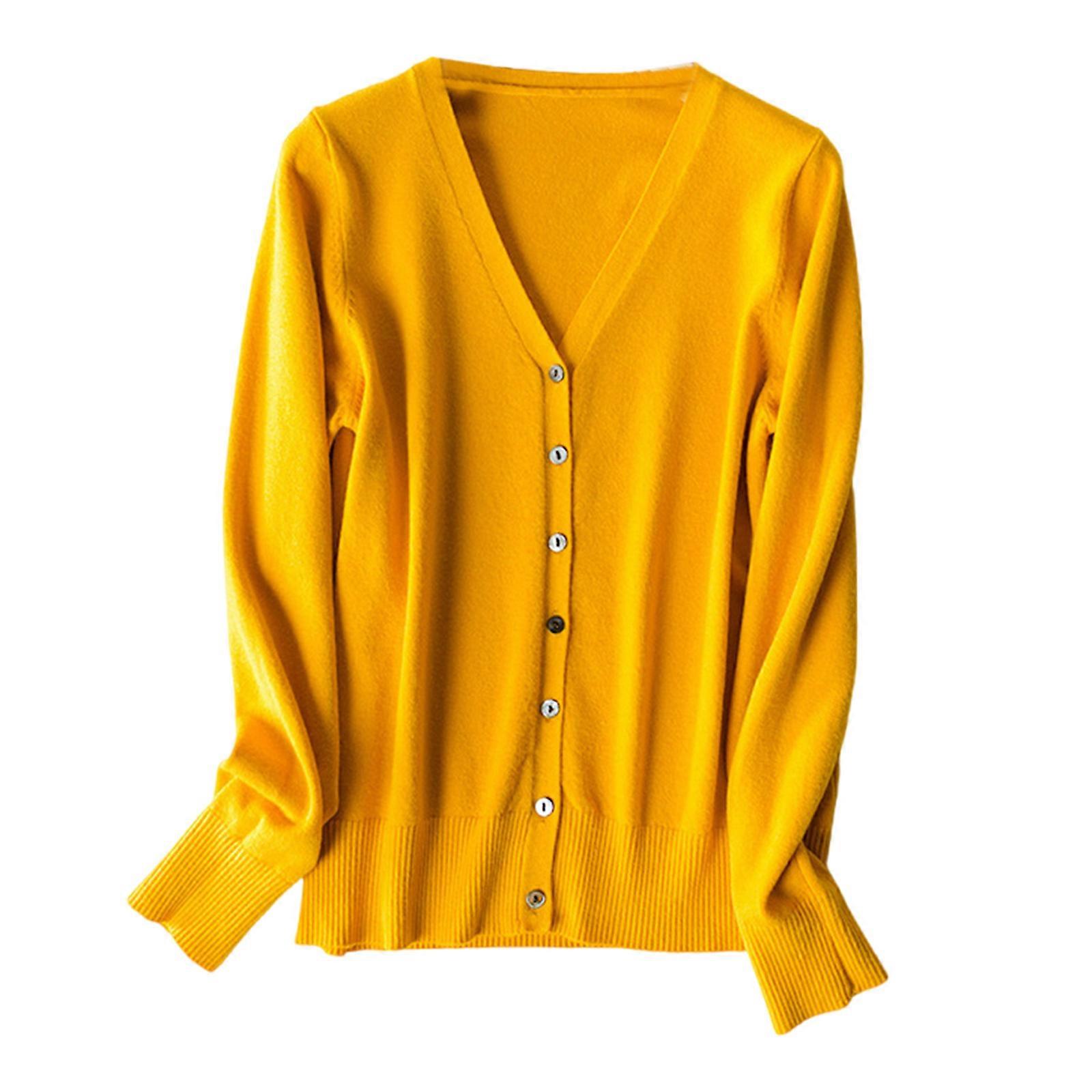 Fashionable Long Sleeve V Neck Cardigan for Women Slim Short Sweater Button Down Lightweight Knitwear Outerwear Coat turmeric XL