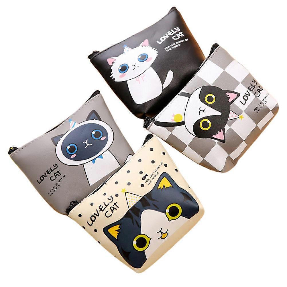 Fashionable 4Pcs Small Wallet Cat Pattern Purse Stylish Mini Coin Pouch For Women Girls School Occasions Holding Coins