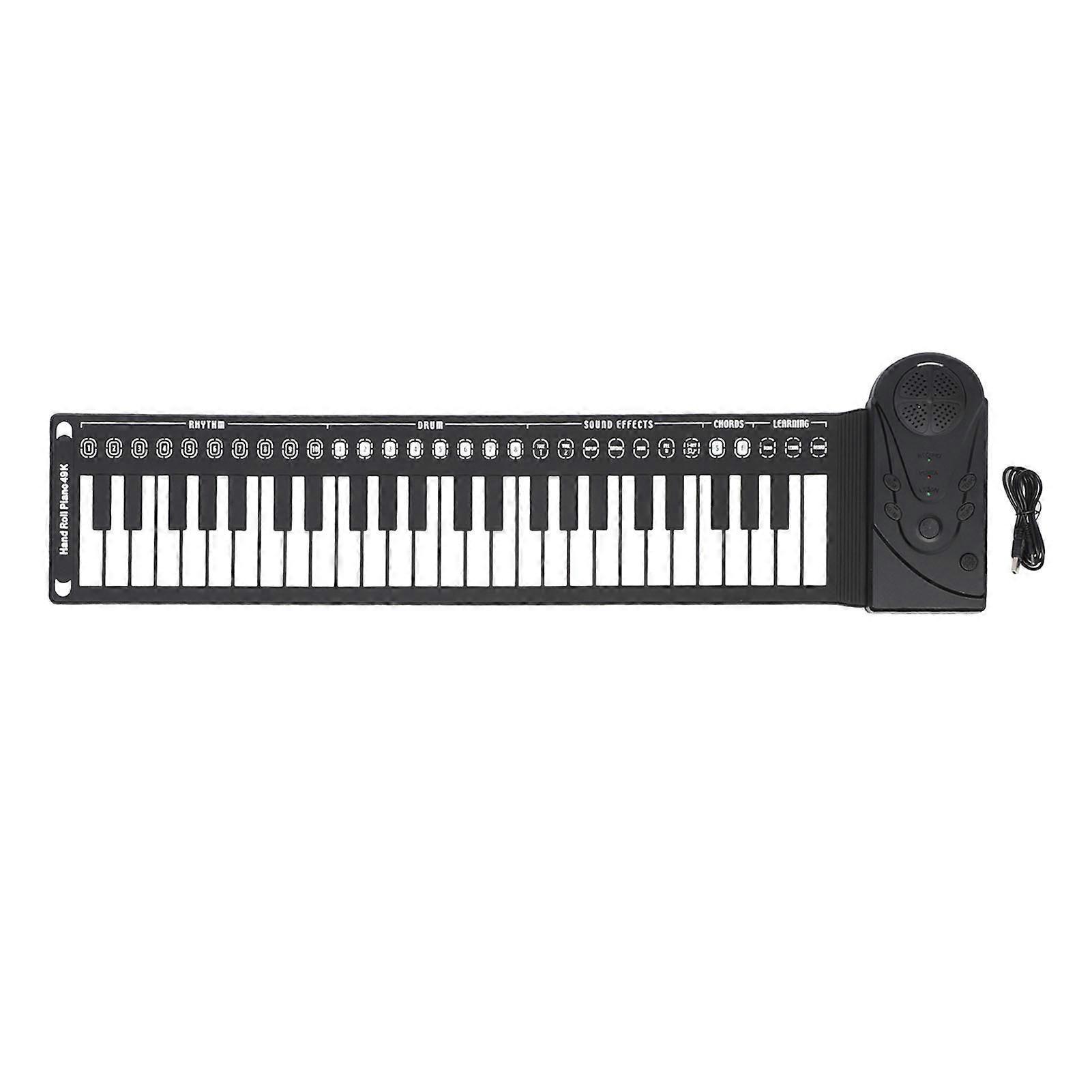 Rolling 49 Key Speaker Keyboard Portable Multifunctional 49 Keys Folding Electronic Keyboard for Training Black
