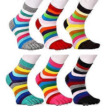 المرأة اصبع القدم الجوارب 5 إصبع القطن الفتل الرياضية 6 حزمة (لون عشوائي)