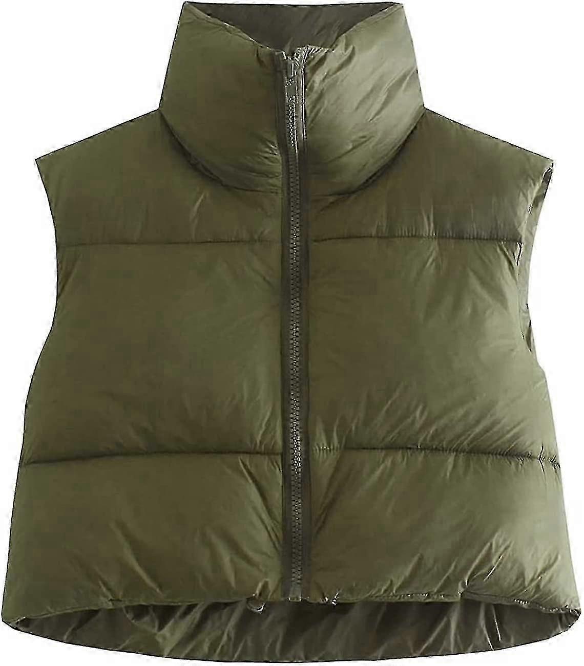 Women Cropped Puffer Vest Lightweight Sleeveless Zipped Stand Collar Short Puffer Vest Outerwear