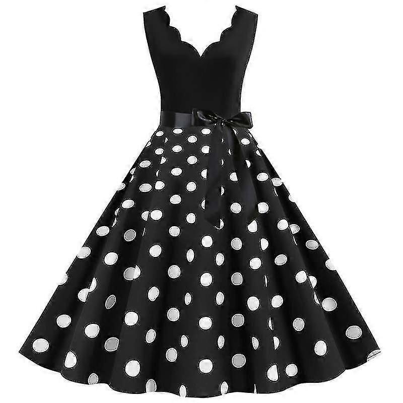 Women Polka Dot Rockabilly Sleeveless Belted Dress Swing Hepburn A-line Dresses(jy14724)