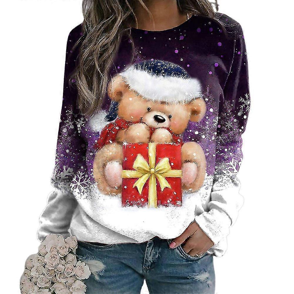Women Novelty Santa Claus Long Sleeve Pullover Sweatshirt Snowman Bear Print Crew Neck Casual Tops