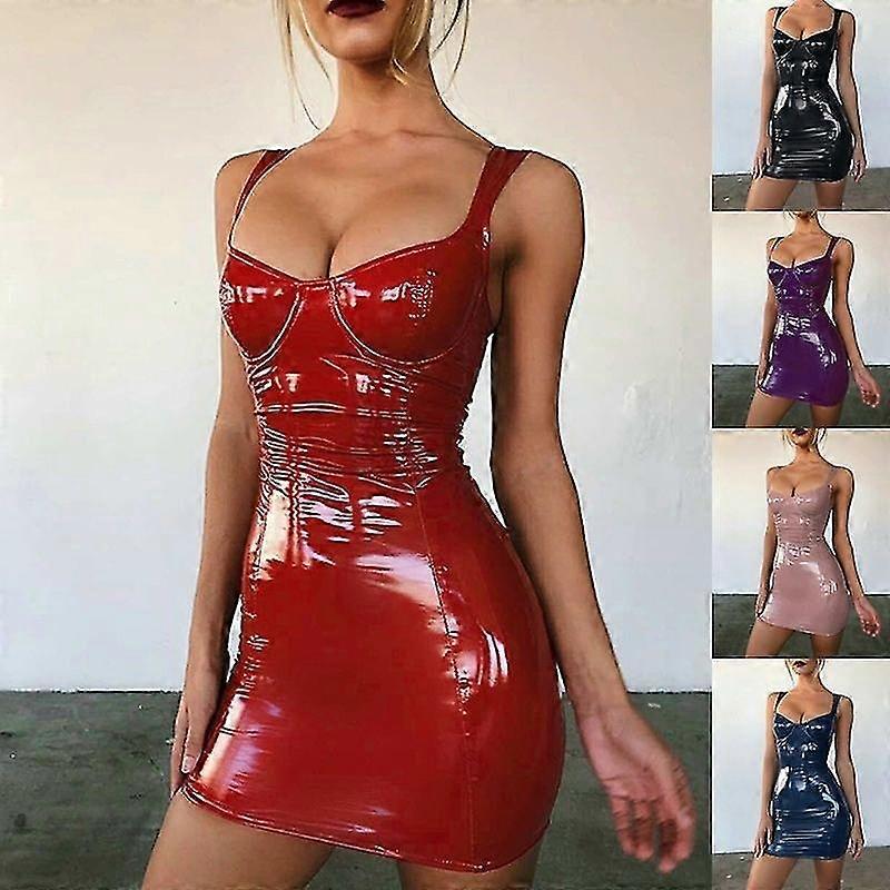 Womens Artificial Leather Shiny Shiny Wrap Chest Sling Waist Thin Pu Leather Sling Dress Zekai
