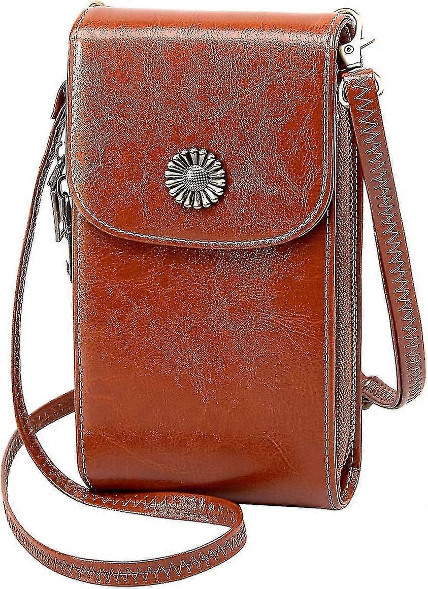 Women's Leather Cell Phone Bag Small Crossbody Phone Bag With Card Holder And Zipper, Women's Phone Wallet Pouch With Long Adjustable Shoulder Strap (